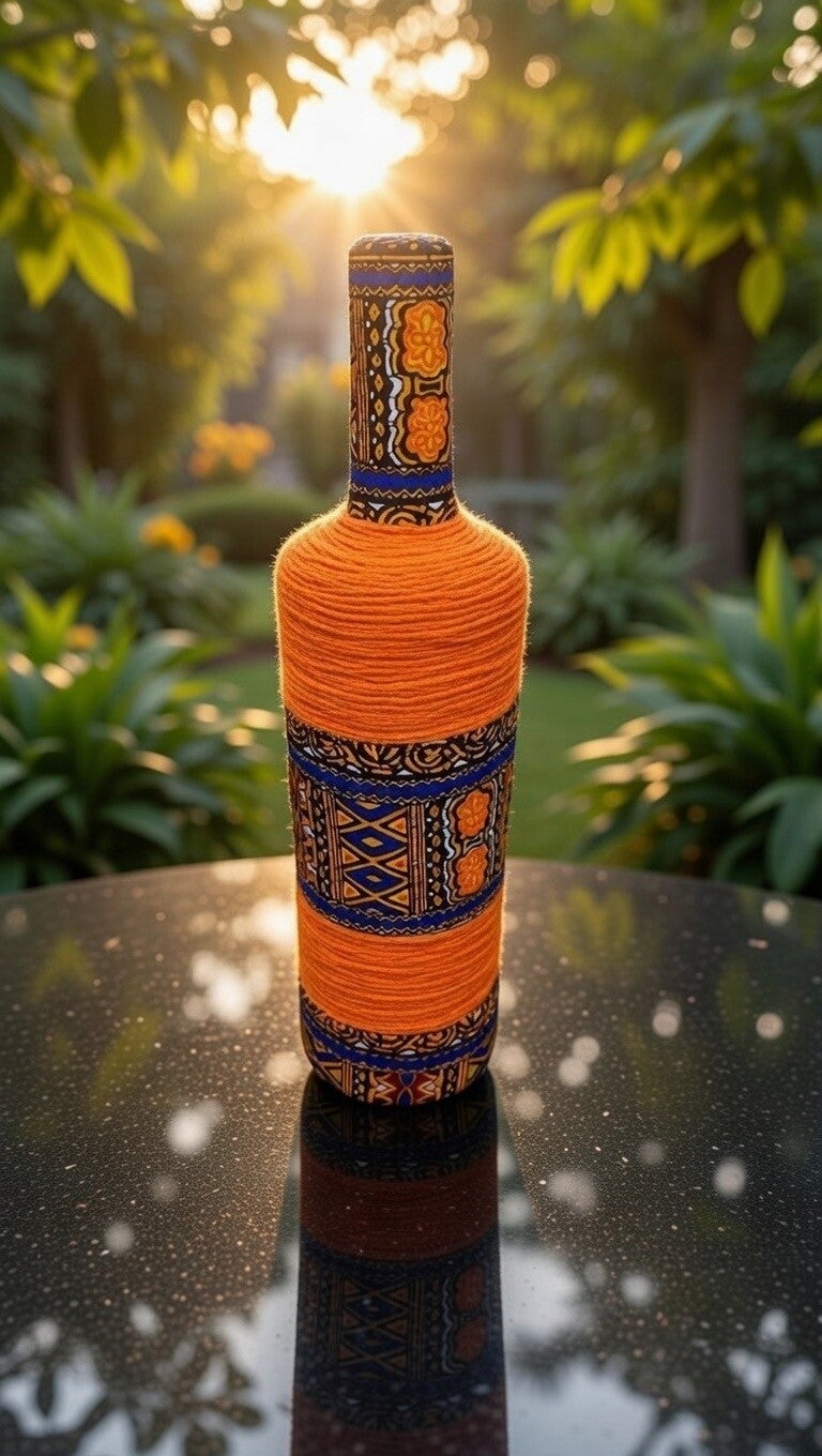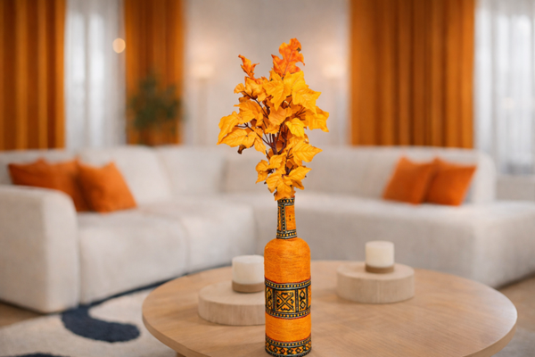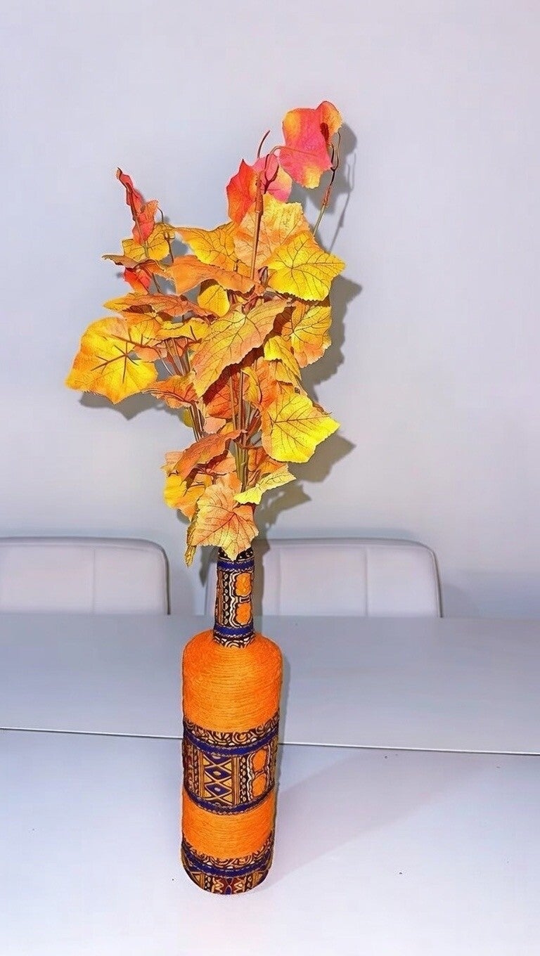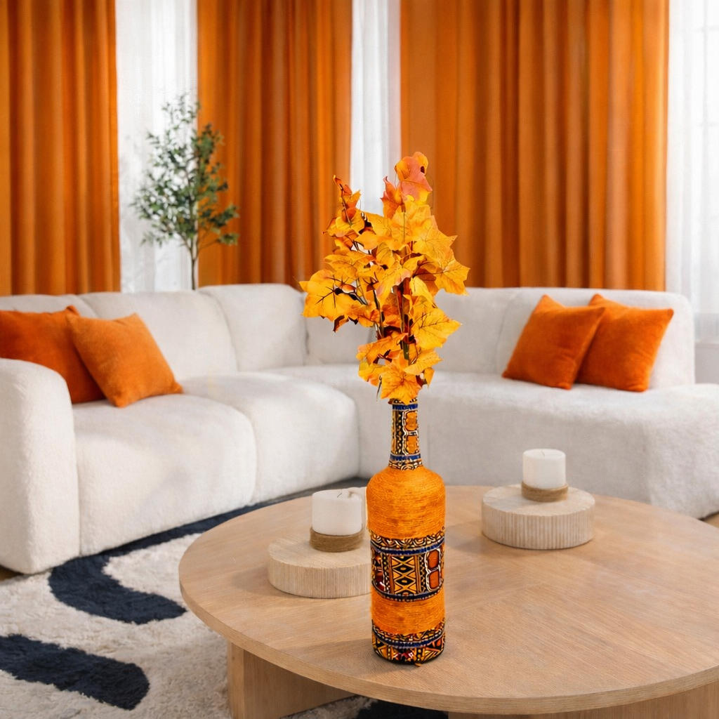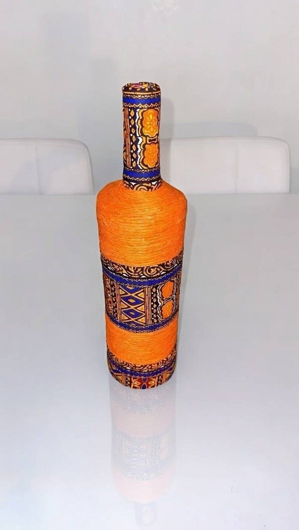 - Ce vase bouteille est conçu en jute orange , offrant une touche de nature à votre intérieur. Il est orné de détails en corde naturelle, ajoutant une élégance unique. Parfait pour la décoration intérieure, il apporte une ambiance chaleureuse et accueillante.